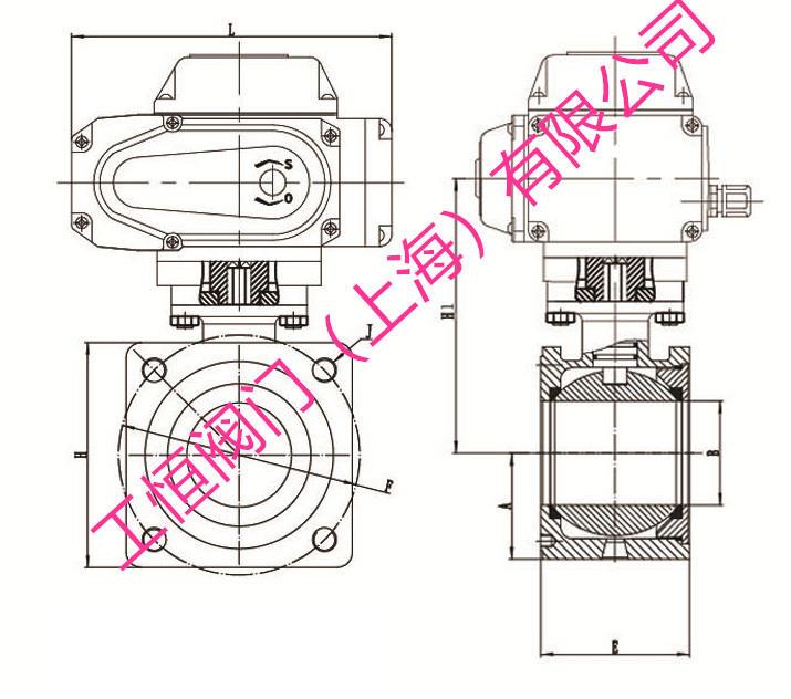 電動(dòng)方球閥主要用鑄鐵、不銹鋼、聚四氟乙烯等加工而成。主要結(jié)構(gòu)及連接尺寸如下圖及表