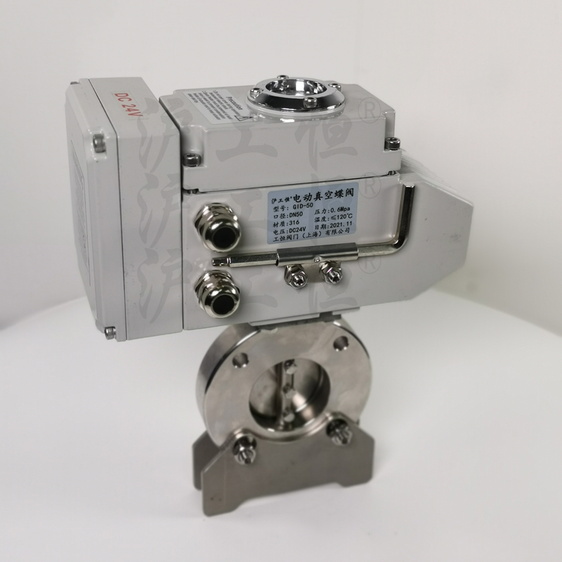 GID-50~400電動真空蝶閥:別名真空蝶閥,閥板采用夾緊結構,把閥板的密封圈夾緊,除了能用在真空狀態下,也能在低壓狀態下使用。精小型電動執行器,普通戶外開關型系列,對夾法蘭連接,中心垂直板結構,不銹鋼材質閥板,2Cr13不銹鋼閥軸,四氟閥座軟密封,閥體CF8,使用溫度-150℃+150℃,使用介質:空氣、非腐蝕性介質等,壓力0.1MPa或者負壓。