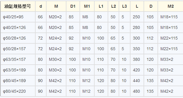 快速油缸(圖3)是通過齒輪齒條推動蝶閥的執行機構,為保證其運行可靠,油缸密封選用了進口的密封圈,并設置了液壓緩沖裝置以保護蝶閥,設計了節流裝置,按系統要求控制驅動外界負載,直接安裝于齒輪齒條傳動裝置上。為更好地與快關蝶閥連接,快速油缸也做了系列化設計,見下表。