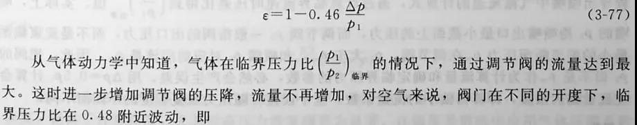 對(duì)不可壓縮流體——液體的一般計(jì)算公式,各個(gè)都差異不大,而對(duì)于可壓縮流體則不同。可壓縮流體流量系數(shù)的計(jì)算比一般液體要復(fù)雜,其原因是可流體經(jīng)節(jié)流之后體積膨脹、密度減小,而且在P1不變和△P增加到一定程度時(shí),通過節(jié)流孔后會(huì)達(dá)到臨界狀態(tài),產(chǎn)生阻塞流,因此必須考慮這些因素的影響而對(duì)計(jì)算公式加以修正。主要的氣體流量系數(shù)計(jì)算公式見表3-5。