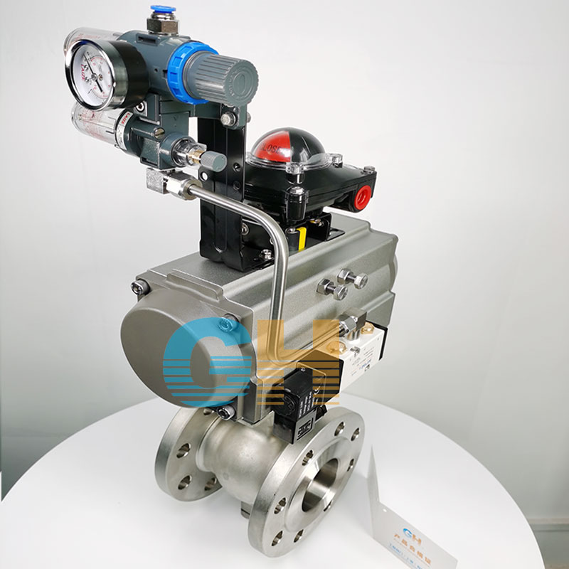 氣動V型調節球閥由執行機構和調節機構組成。執行機構是調節閥的推力部件,它按控制信號壓力的大小產生相應的推力,推動調節機構動作。閥體是氣動調節閥的調節部件,它直接與調節介質接觸,調節該流體的流量。主要零件材質