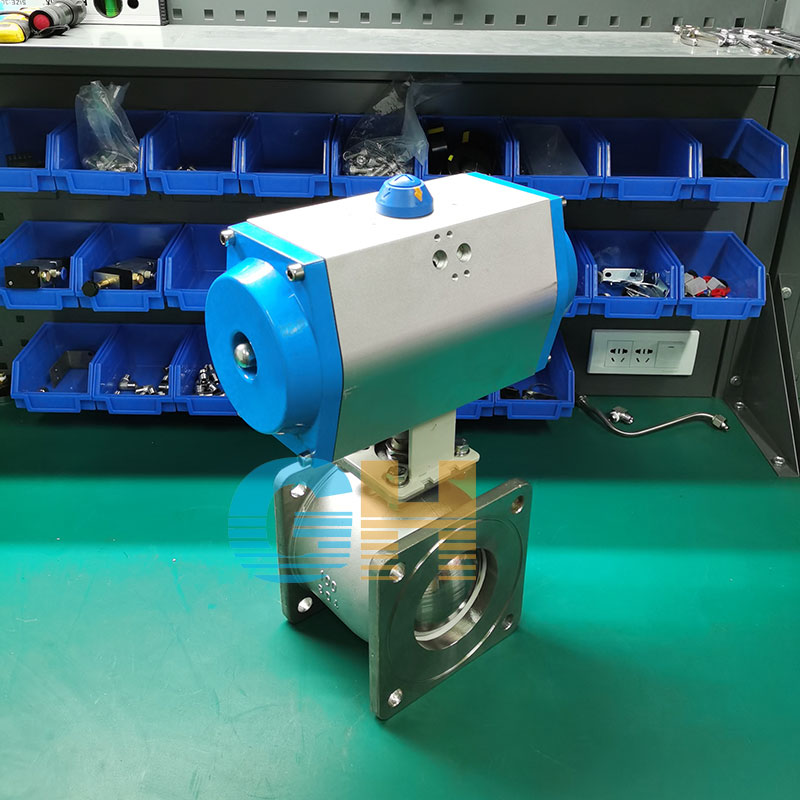 2、本氣動方球閥可安裝在任意角度的管道上,應關閉安裝為宜;焊接管道法蘭時應將閥門密封口用板擋住以防止顆粒、雜物挫傷密封面,焊后取下閥門,對閥門密封面及管道內腔進行清潔,然后再安裝固定閥門。