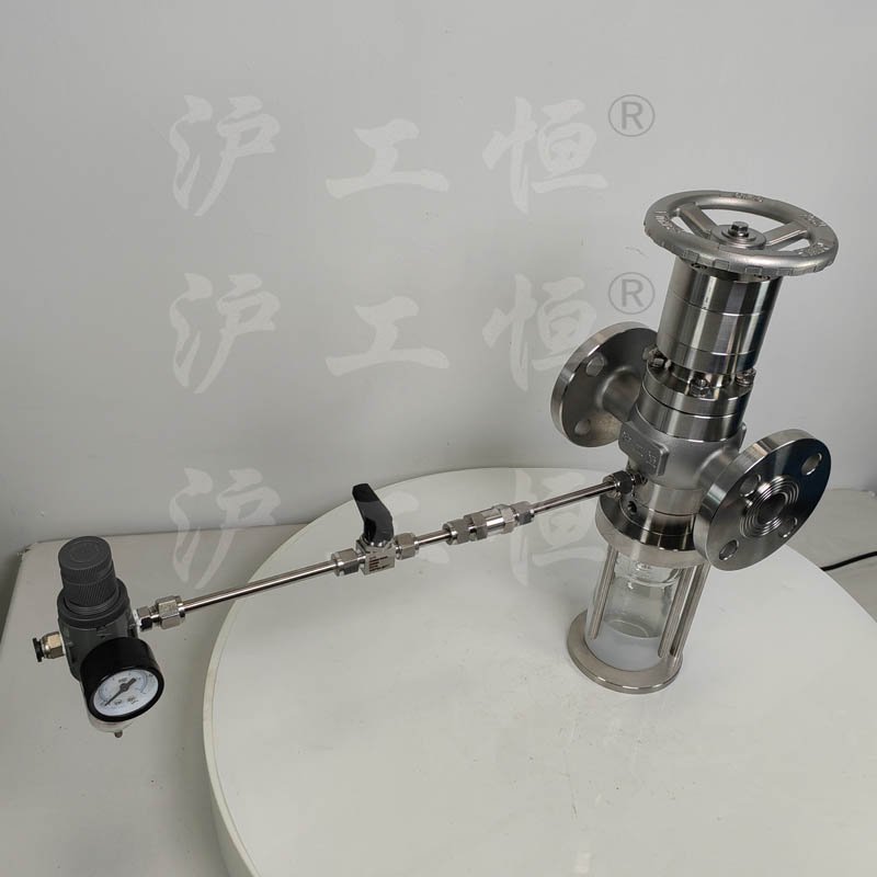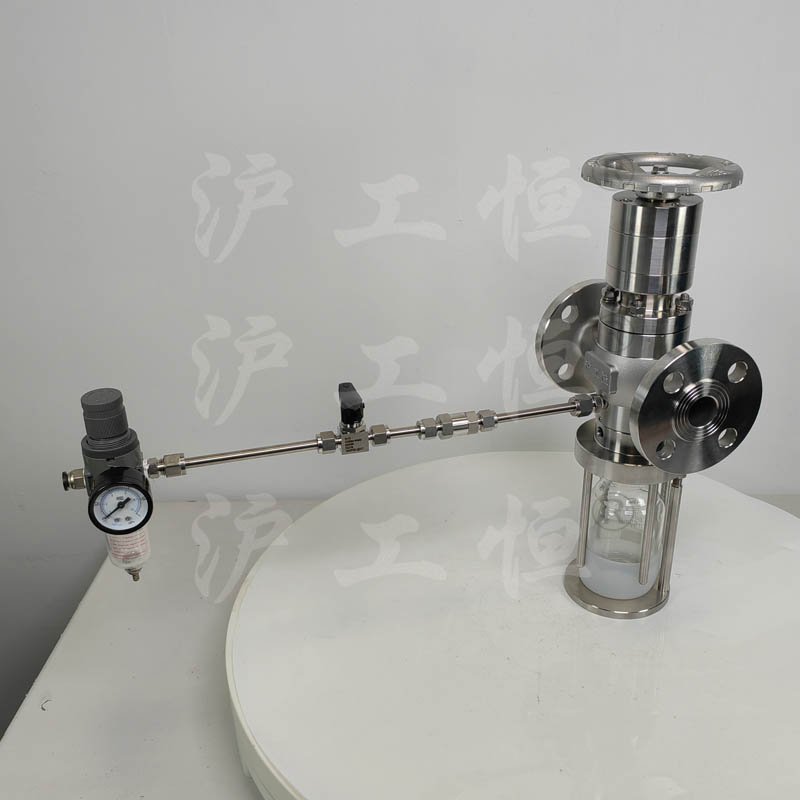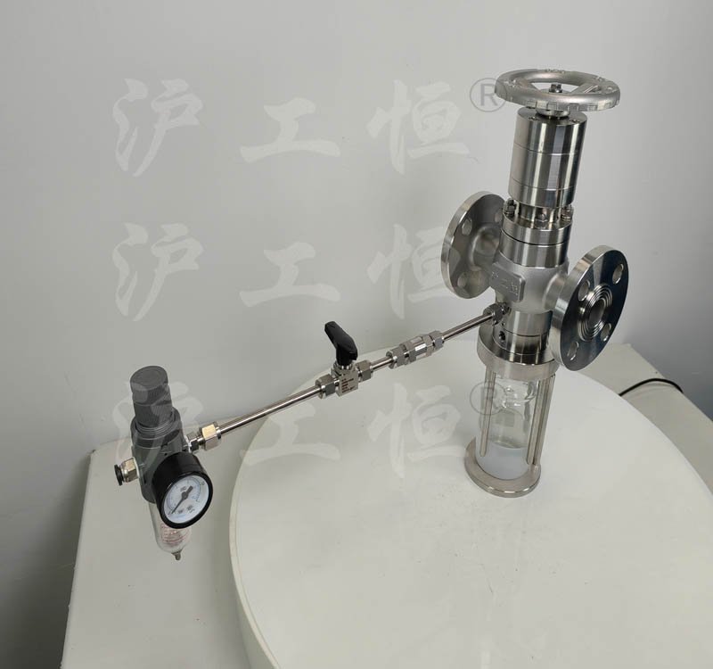 GHCSZXQYF-16帶有氮?dú)獯祾呖谠诰取樣閥用于管線在線取樣,取樣介質(zhì)真實(shí), GHCSZXQYF-16帶有氮?dú)獯祾呖谠诰取樣閥主要用于取粘稠介質(zhì),因粘稠介質(zhì)的流動(dòng)性差,特在取樣閥的出料口增設(shè)氮?dú)獯祾呖冢蓪⒄吵斫橘|(zhì)吹掃至取樣瓶?jī)?nèi),提高再次取樣的準(zhǔn)確性,GHCSZXQYF-16帶有氮?dú)獯祾呖谠诰取樣閥主要有閥體、閥芯、閥桿、閥座、排氣口,氮?dú)獯祾呖凇⒅够亻y、吹掃球閥、取樣瓶組成,取樣瓶為可拆卸設(shè)計(jì),試樣進(jìn)入取樣瓶?jī)?nèi),配套的瓶蓋可將取樣瓶密封,避免污染試樣,取樣閥流道無(wú)滯留、無(wú)流阻設(shè)計(jì),不影響流量,閥桿通過(guò)手輪旋轉(zhuǎn)帶動(dòng)閥桿及閥芯,閥芯上下提拉,可精確控制流量,精確控制取樣量,使試樣進(jìn)入取樣瓶?jī)?nèi),取樣瓶可選透明和避光兩種,本取樣閥廣泛應(yīng)用在制藥、化工、食品行業(yè)。