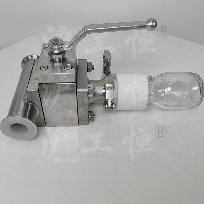 GHQYF-16 快裝式卡盤(pán)取樣閥閥主要用于取易揮發(fā)介質(zhì),介質(zhì)不可接觸空氣,GHQYF-16 快裝式卡盤(pán)取樣閥主要有閥體、閥芯、閥桿、閥座、密閉針、取樣瓶組成,取樣瓶為可拆卸設(shè)計(jì),試樣通過(guò)密閉針進(jìn)入取樣瓶?jī)?nèi),橡膠可將取樣瓶密封,避免污染試樣,流道無(wú)流阻設(shè)計(jì),不影響流量,閥桿通過(guò)手輪、電動(dòng)執(zhí)行機(jī)構(gòu)、氣動(dòng)執(zhí)行機(jī)構(gòu)旋轉(zhuǎn)帶動(dòng)閥桿及閥芯,閥芯上下提拉,可精確控制流量,實(shí)現(xiàn)試樣進(jìn)入取樣瓶?jī)?nèi),取樣瓶可選透明和避光兩種,本取樣閥廣泛應(yīng)用在制藥、化工、食品行業(yè)。