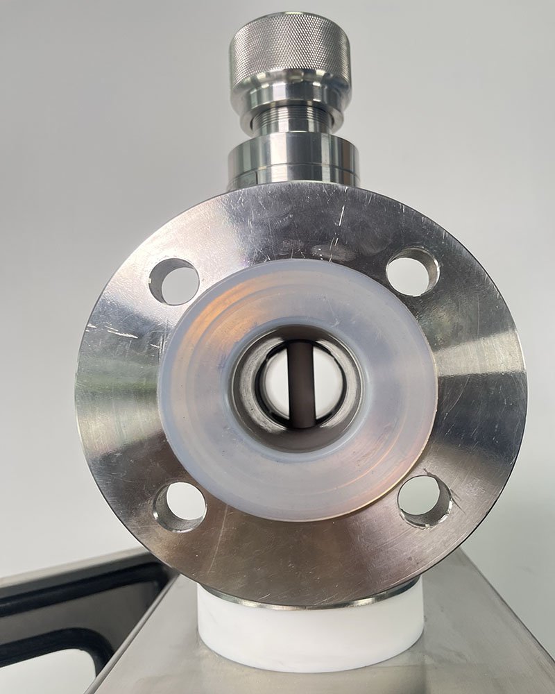 不銹鋼在線襯氟取樣閥-帶安全箱采用全襯氟設(shè)計(jì),可以在腐蝕性工況的取樣,解決特材造價(jià)高的問(wèn)題,不銹鋼在線襯氟取樣閥-帶安全箱主要有襯氟閥體、襯氟閥芯、襯氟閥桿、閥座、氣動(dòng)執(zhí)行機(jī)構(gòu)、取樣瓶組成,取樣瓶為可拆卸設(shè)計(jì),試樣進(jìn)入取樣瓶?jī)?nèi),可將取樣瓶密封,避免污染試樣,流道無(wú)流阻設(shè)計(jì),不影響流量,閥桿通過(guò)手柄、電動(dòng)執(zhí)行機(jī)構(gòu)、氣動(dòng)執(zhí)行機(jī)構(gòu)旋轉(zhuǎn)帶動(dòng)閥桿及閥芯使試樣進(jìn)入閥芯內(nèi),通過(guò)旋轉(zhuǎn)閥芯180°實(shí)現(xiàn)試樣進(jìn)入取樣瓶?jī)?nèi),放樣的同時(shí),閥芯將取樣口關(guān)閉,從而做到零泄漏及無(wú)壓取樣,不會(huì)因開(kāi)關(guān)閥門對(duì)取樣瓶造成壓力沖擊,從而保證操作者的安全。取樣瓶可選透明和避光兩種,本取樣閥廣泛應(yīng)用在制藥、化工、食品行業(yè)。