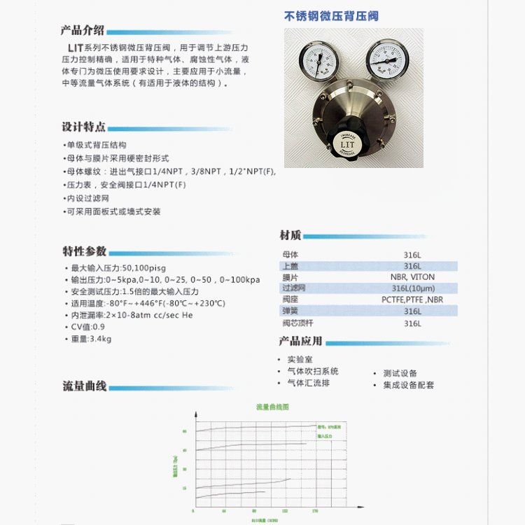 單級式減壓結構,母體與膜片采用硬密封形式,內(nèi)設過濾網(wǎng),可采用面板式或墻式安裝 實驗室 氣體吹掃系統(tǒng) 腐蝕性氣體、特種氣體 氣體匯流排 測試設備,采用超大面積膜片,適用于微小壓力場合。