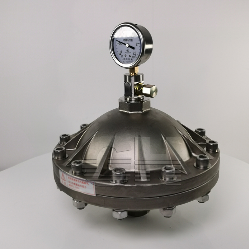 2接觸介質部分只有下殼體和膜片,常規膜片采用橡膠襯四氟形式,四氟做過多向滾壓處理,耐腐蝕性好,使用壽命高